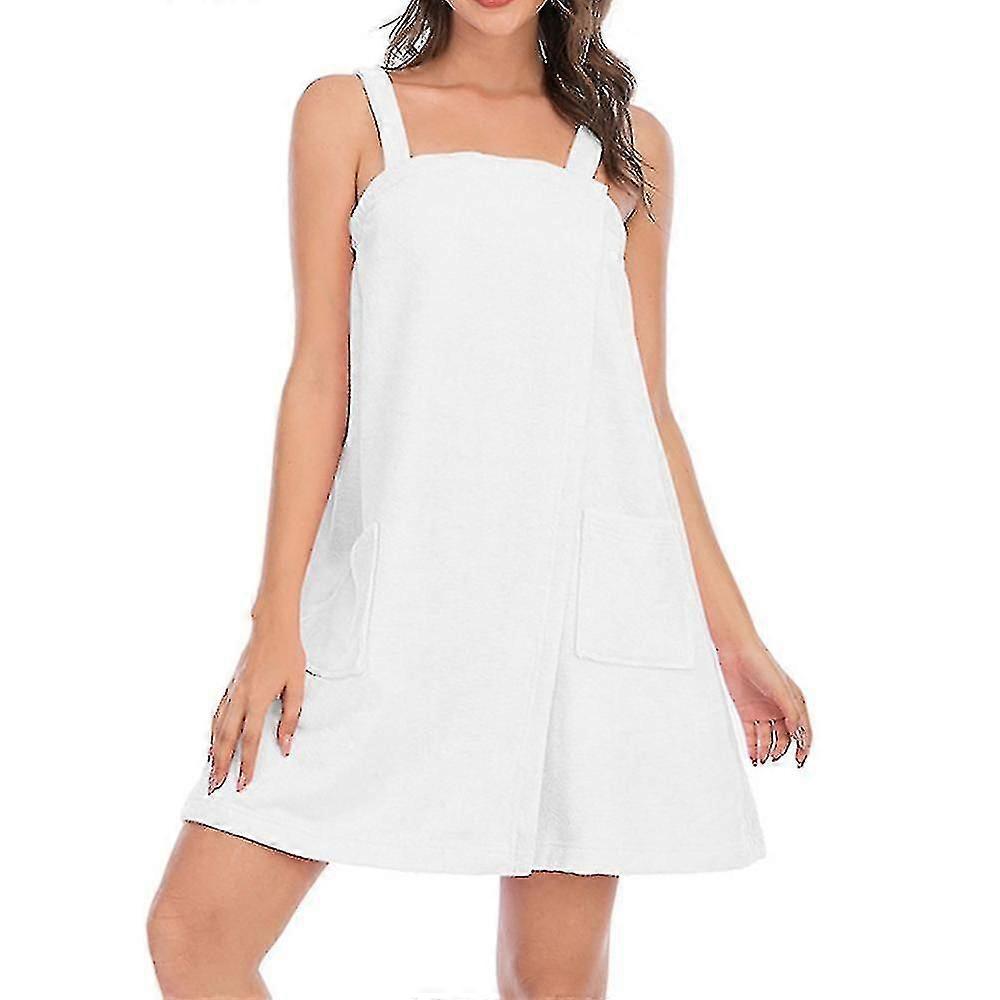 Women's Bath/shower Wrap Towel Dress With Straps Closure Lightweight Knee Length Body Wraps A