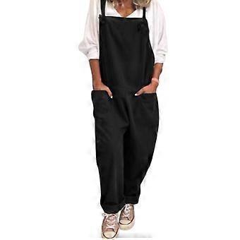 Womens Plain Dungarees Overalls With Pocket, Casual Sleeveless Playsuit Trousers Casual Jumpsuit Plus Size