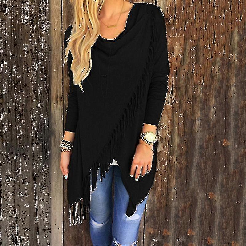Women Tassel Cardigan Shawl Knitted Sweater Poncho Coat Wrap Top_x