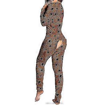 Women Print Onesie Pajamas Nightgown Jumpsuit Long Sleeve Nightwear