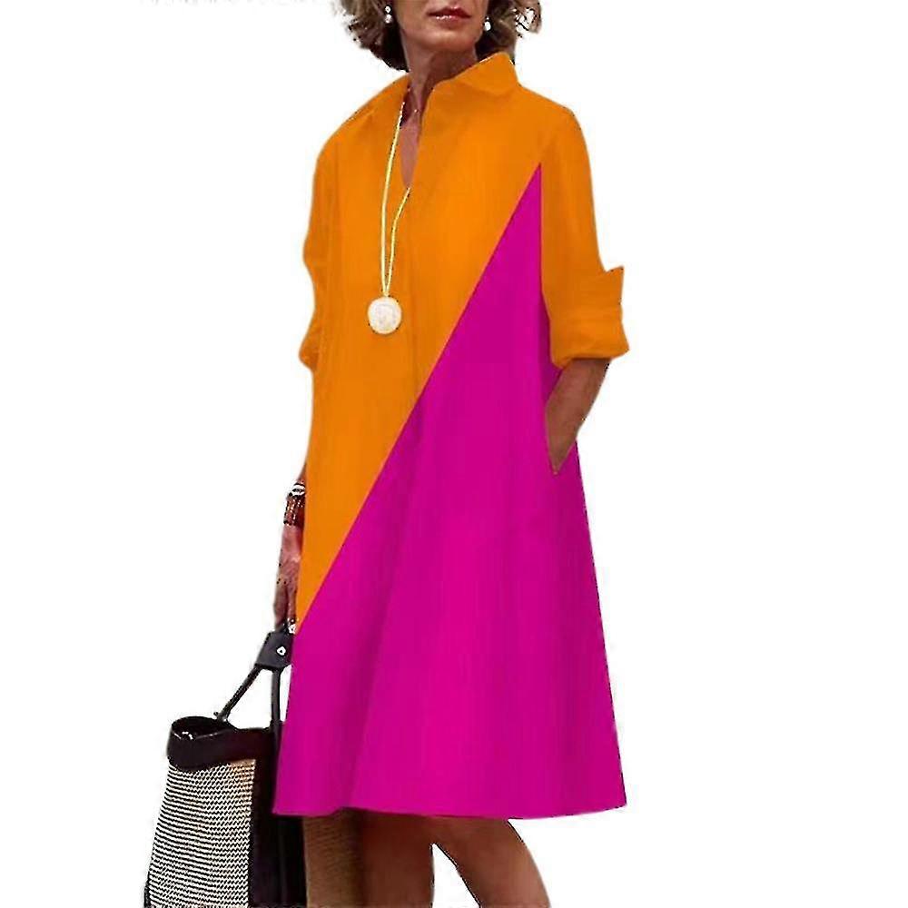 Women's Long Sleeve Print Shirt Dress Ladies Button Loose Blouse Tops Casual Dresses