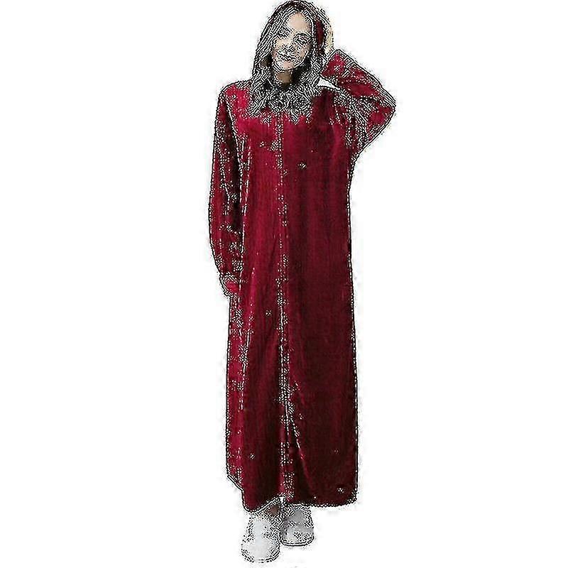 Women Long Hooded Dressing Gown Nightgown Flannel Bathrobe Zip Robes yw