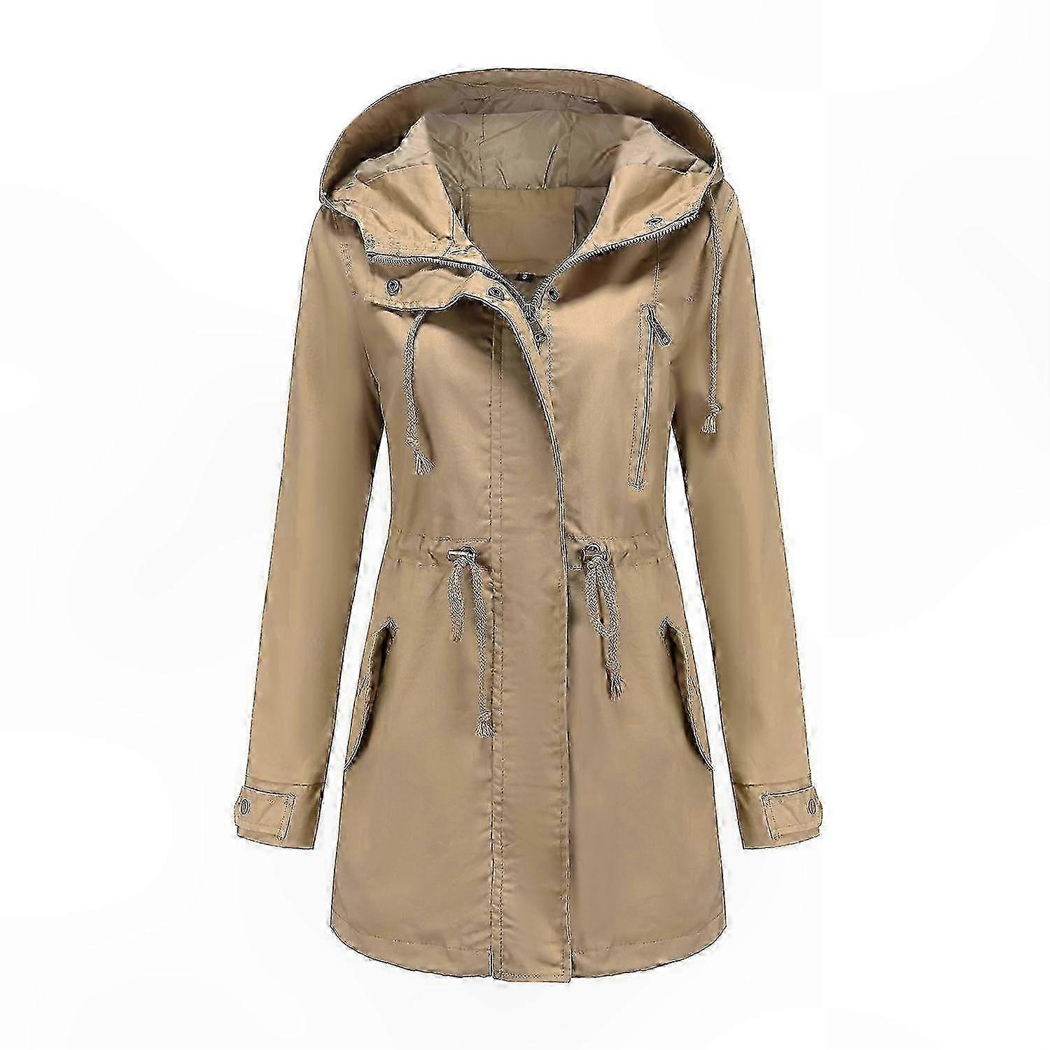 Women's Long Hooded Jacket Windproof Zipper Drawstring Trench Coat for Outdoor Hiking Spring Autumn Winter Solid Color Cotton Outwear
