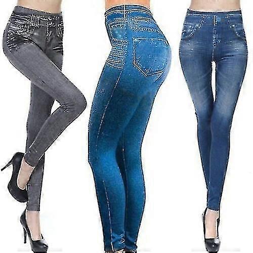 Women High Waist Stretchy Jeggings Ladies Skinny Leggings Denim Look Jeans Pants