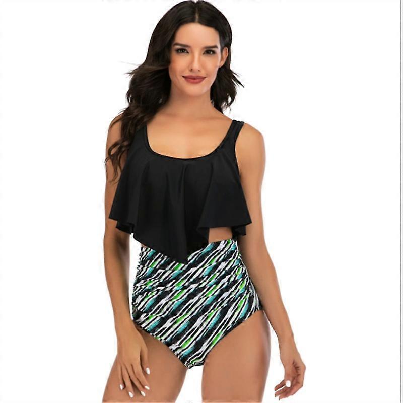 Women High Waisted Bikini Ruffle Swimsuit Flounce Pom Pom Trim Two Piece Bathing Suit