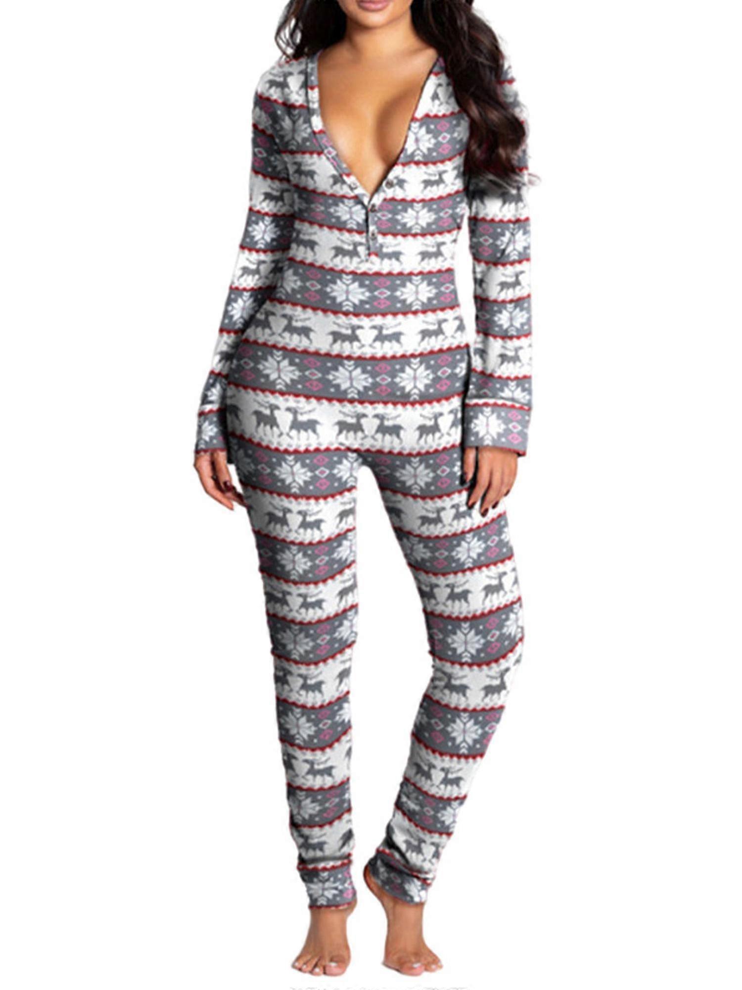 Women's Christmas Printing Bodysuit Long Sleeve Skinny Jumpsuit Casual Rompers