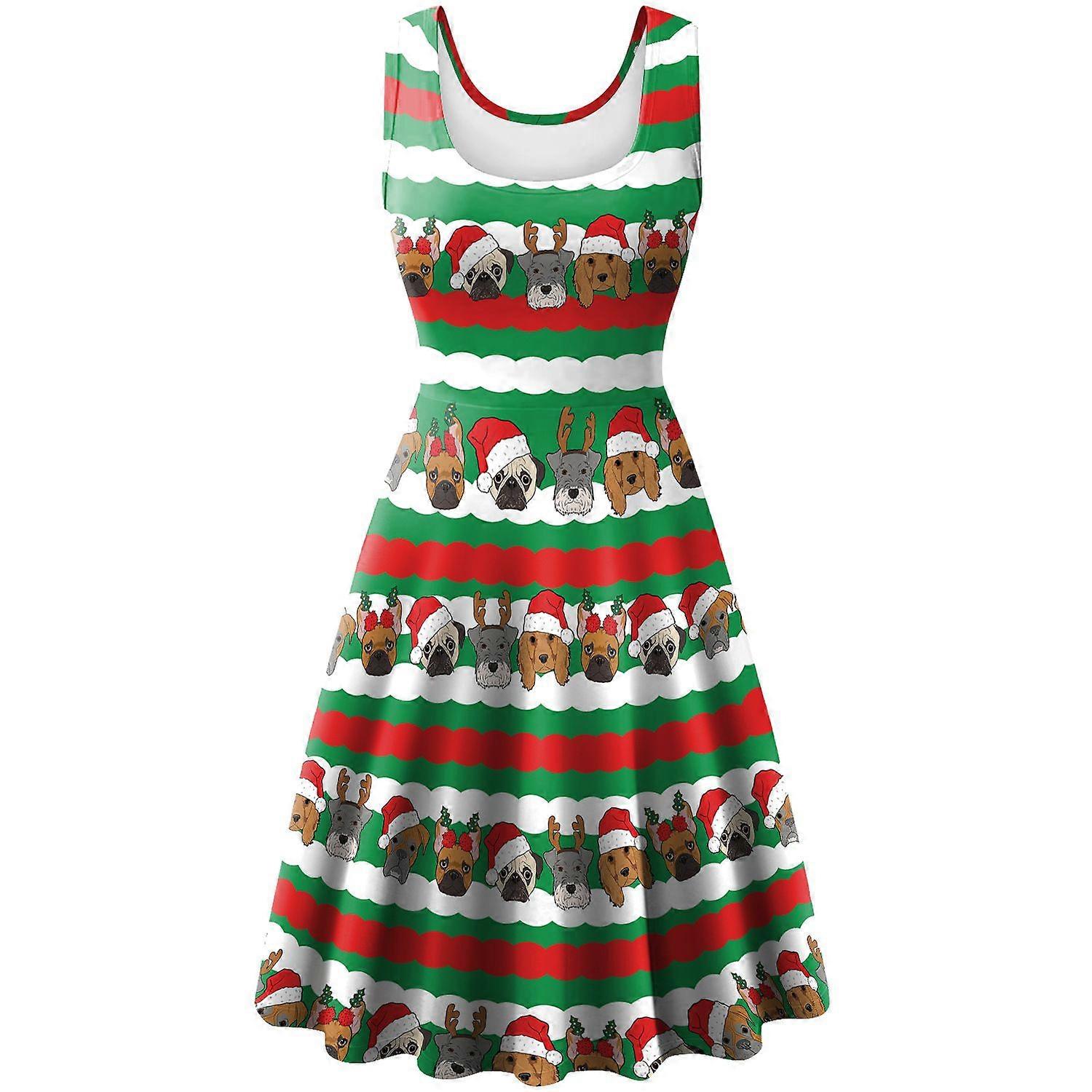 Womens Christmas Dog Print Dress Sleeveless Holiday A-Line Tank Dress Perfect for Festive Gatherings & Parties