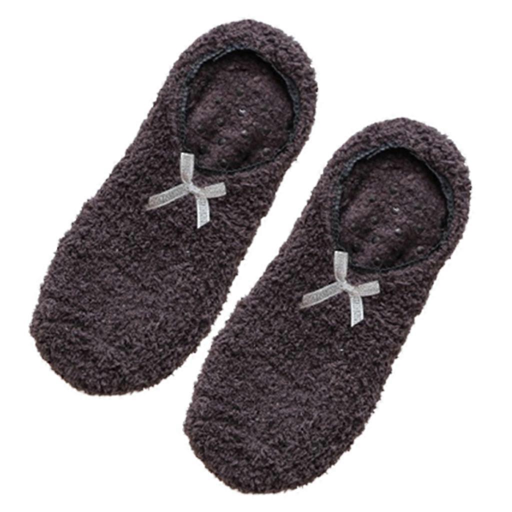 Women Fuzzy Slipper Boat Socks Striped Sweet Bow Non Skid Warm Low Cut Hosiery