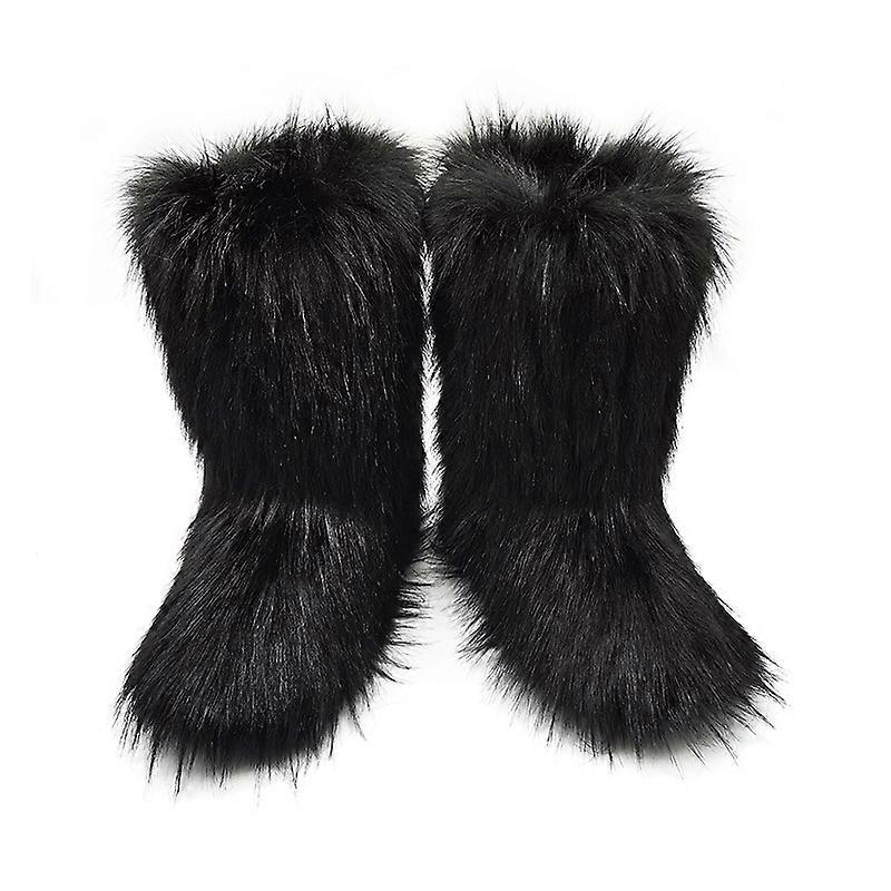 Women's Faux Fur Boot Furry Fluffy Short Warm Boot Mid-calf Boots Warm Comfortable Outdoor Flat Shoes