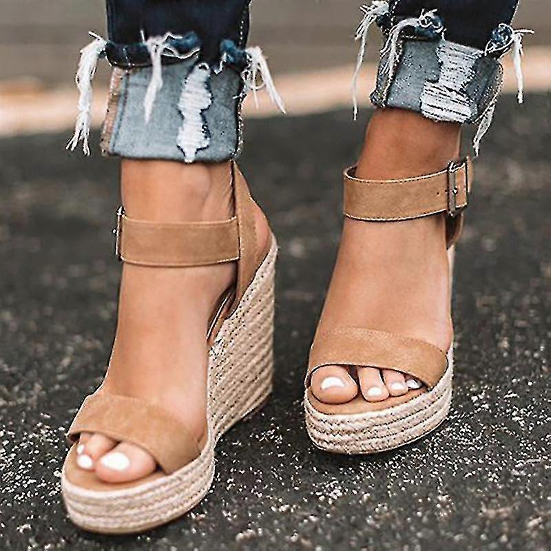 Women Adjustable Ankle Strap Sandal Espadrille Studs Platform High Wedge Heel Shoes