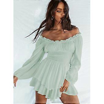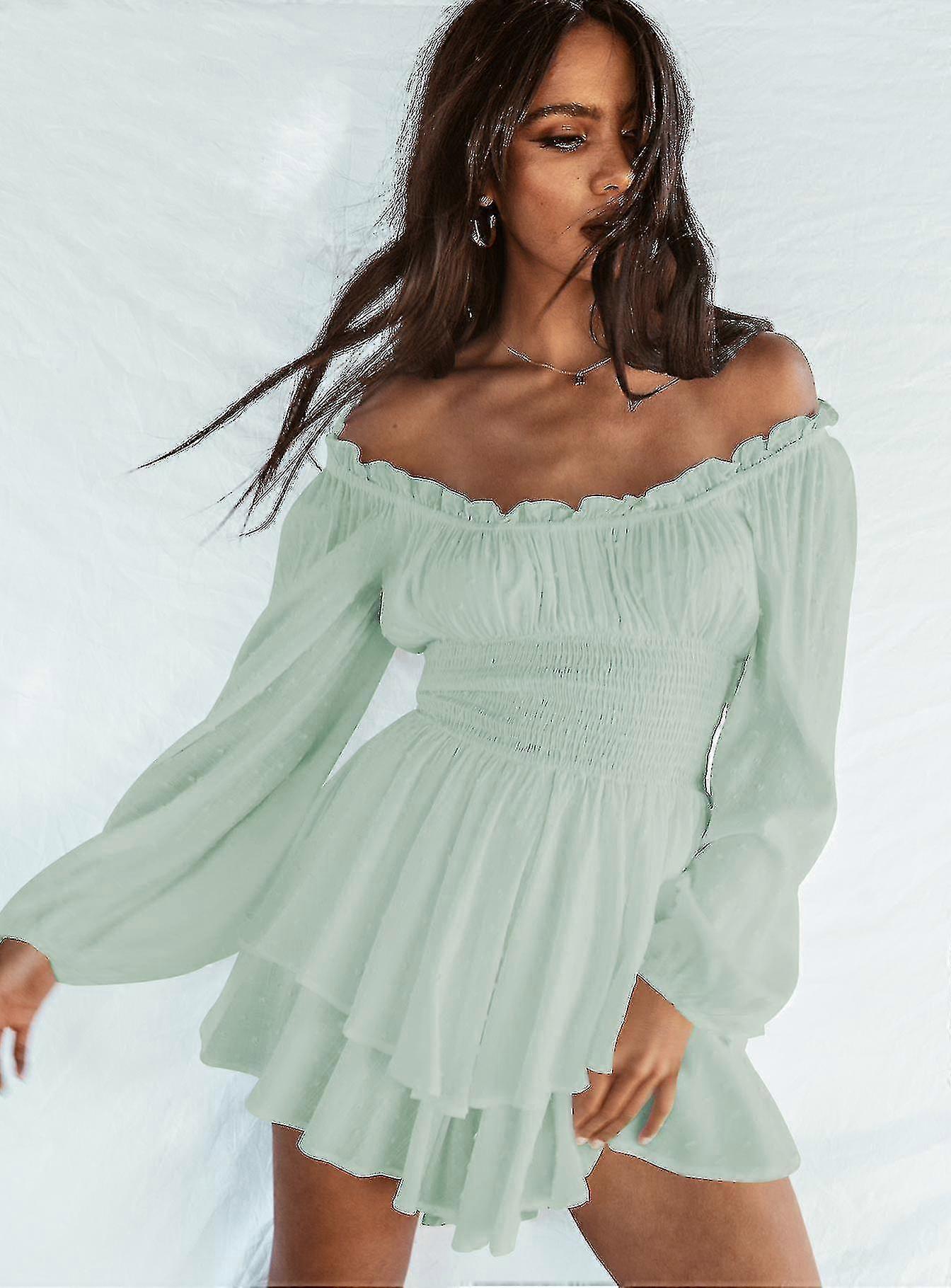 Women's Off Shoulder Long Sleeve Ruched Playsuit Ruffle Hem Jumpsuit Jumpsuit