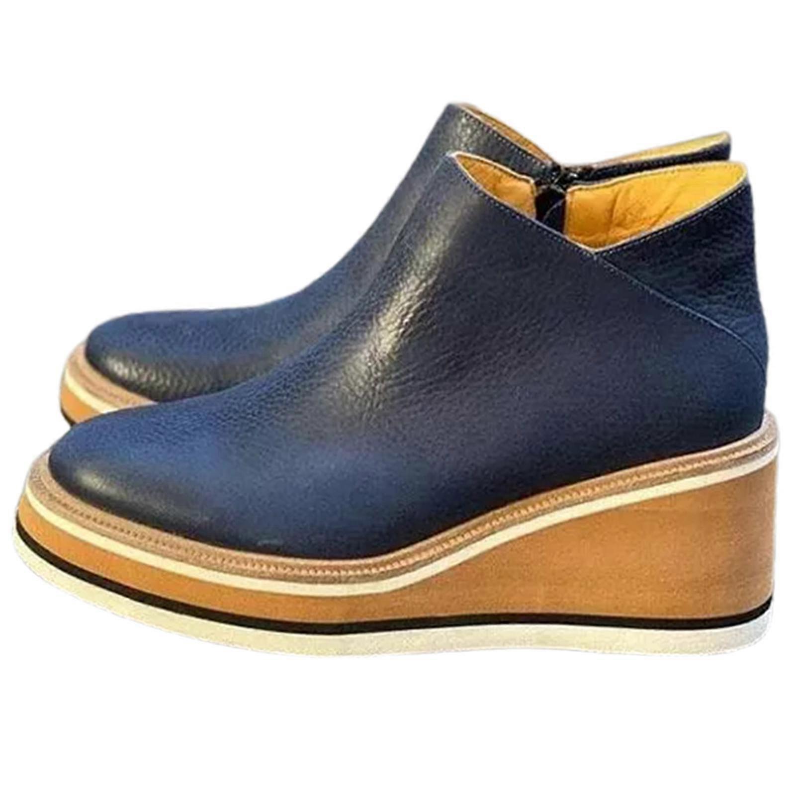 Women's Premium Solid Colors Wedge Ankle Boots Round Toe Footwear Wedges Casual Shoes Fashionable