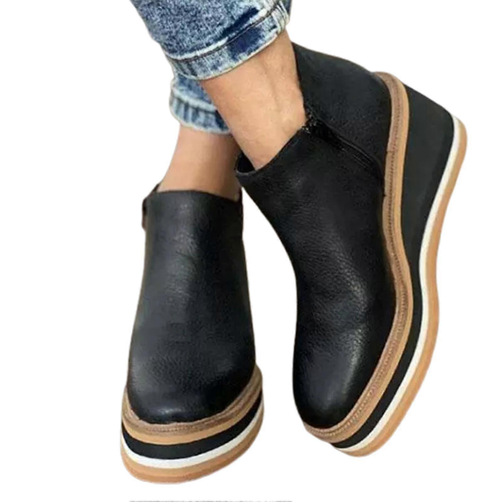 Women's Premium Solid Colors Wedge Ankle Boots Round Toe Footwear Wedges Casual Shoes Fashionable
