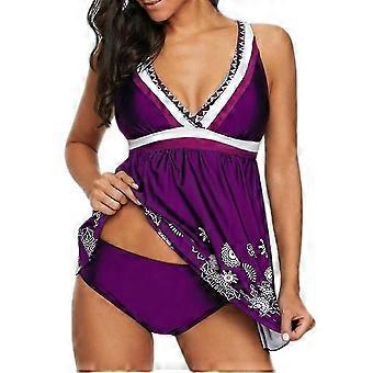 Women Oversized V-neck Floral Print Padded Swimwear Swimdress Briefs Tankini Set Swimsuit