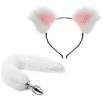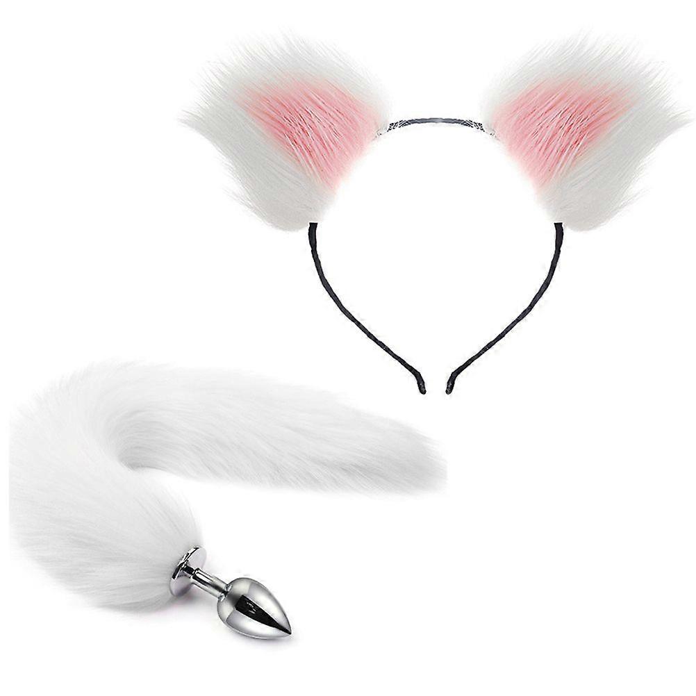 Women Cute Cat Ear Hairband Anime Party Costume with Tail Metal Plug Sexy Cosplay Set