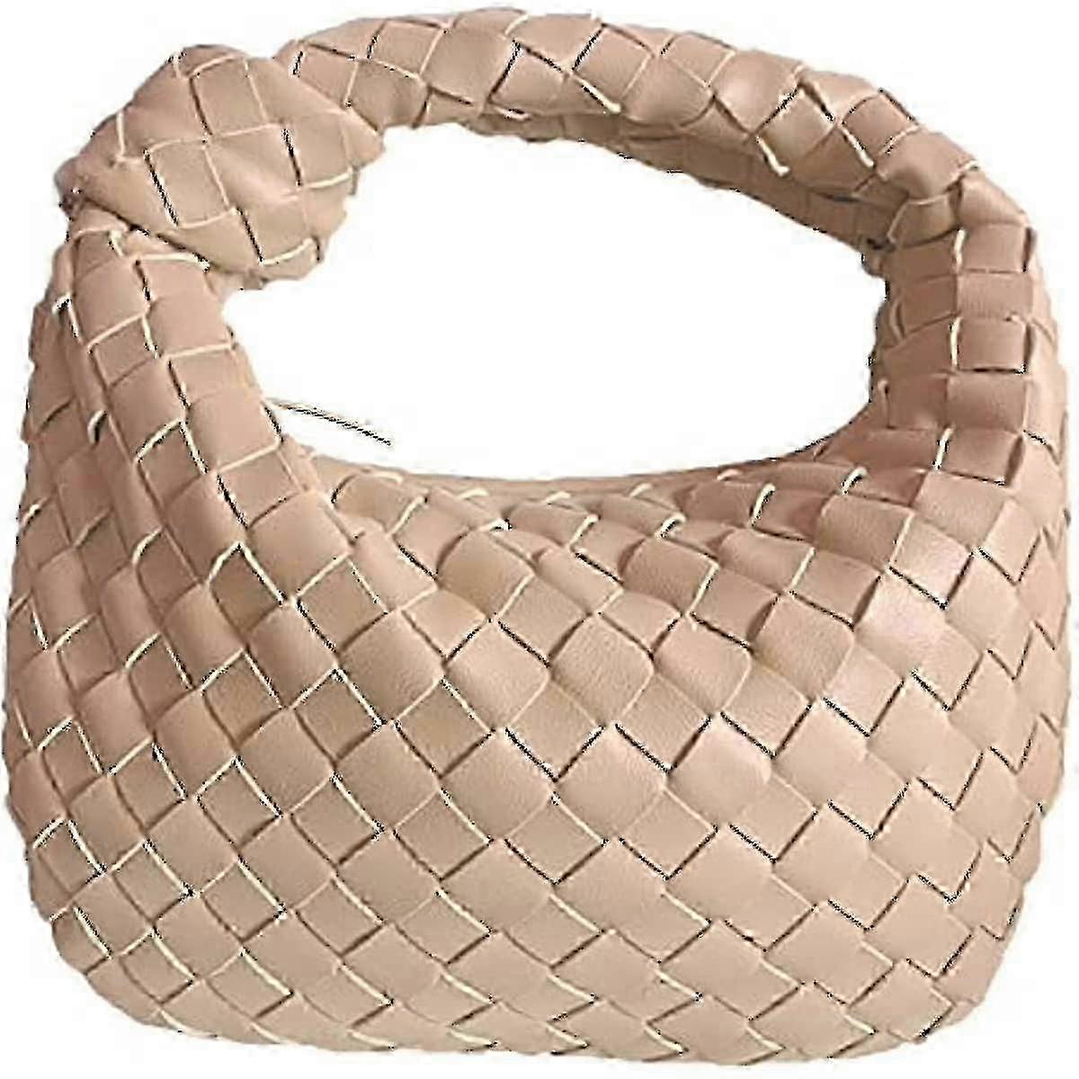 Women Soft Pu Leather Woven Handbag Summer Handmade Hobo Shoulder Bag Woven Clutch Bag Knotted Casual Dumpling Pouch