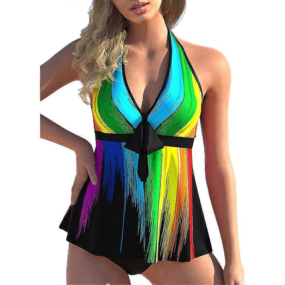 Women Padded Swimwear Tankini Set V-neck Tank Tops + Briefs Swimsuits Plus Size