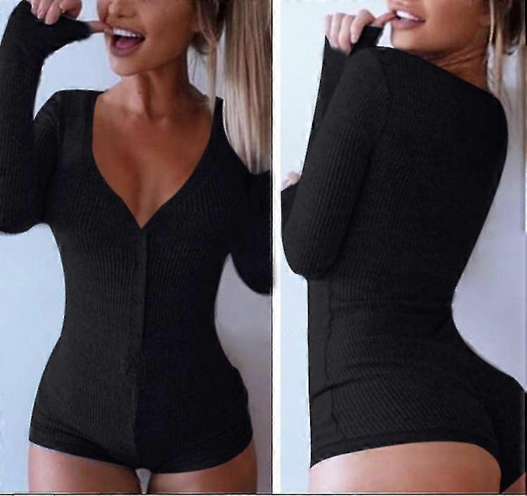 Womens Sexy V Neck Cotton Bodysuit Long Sleeve Autumn Clothing Wear Sexy Slim Short Cotton Knitted Bodycon Bandage Jumpsuit 2019