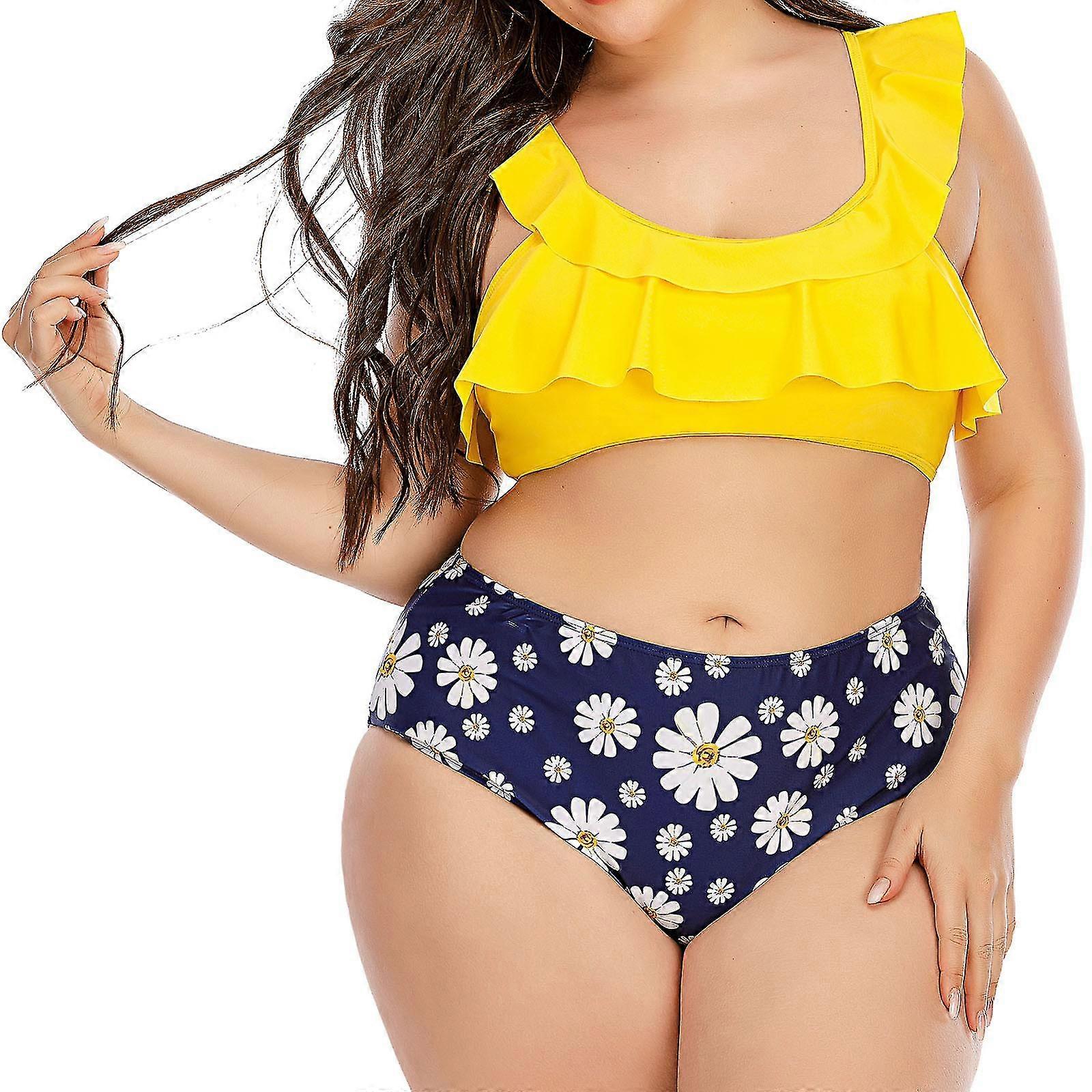 Women's Sexy Printed Ruffled Plus Size Bikini High Waist Split Swimsuit