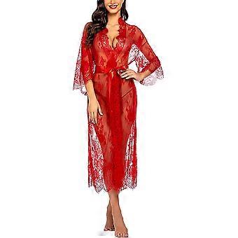 Women Sexy Long Lace Lingerie Kimono Robe Sheer Babydoll Nightgown Nightdress S-3xl