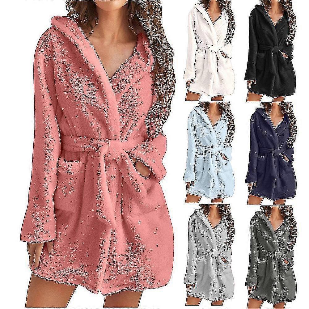 Women Hooded Plush Robe, Short Womens Fleece Robes With Hood Soft Warm Spa Bathrobe/bl