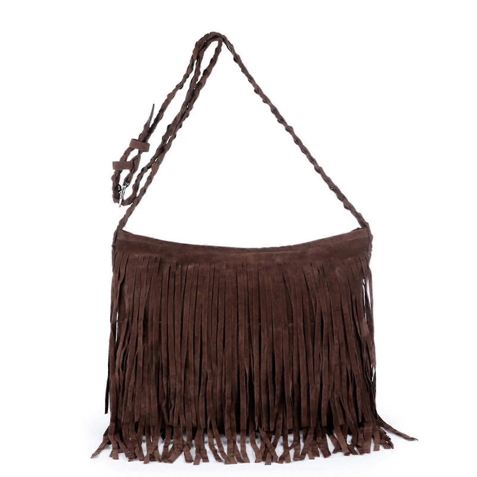 Women's Fringed Leather Shoulder Bag With Adjustable Knitting Strap Soft Ethnic Style Pu Messenger