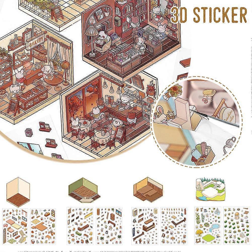 Visual 3D House Stickers DIY Miniature Landscaping Hut Collage Paper Handbook