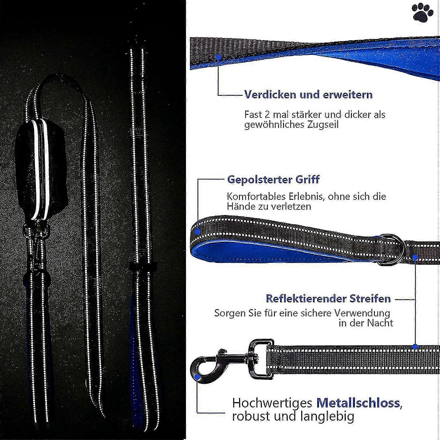 Dual 2 Dog Leash, 2 Large Dog (50kg/180lbs) Dog Leash With Poop Bag Dispenser, 6.6ft Adjustable Leash Reflective Tangle Free (2 Dogs)