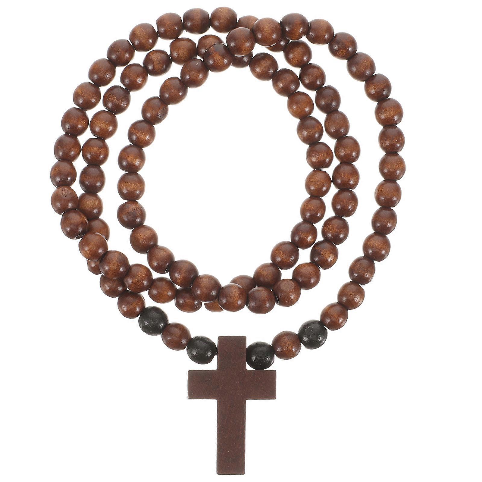 Rosary Necklace Beaded Cross Necklace Wood Vintage Cross Necklace Supply