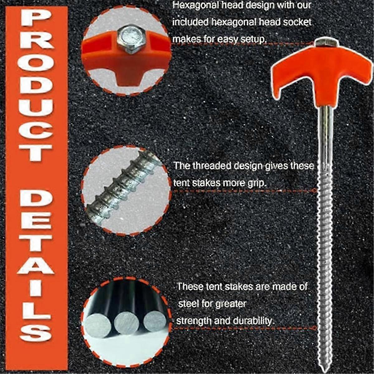 Screw in Tent Stakes - Ground Anchors Screw In, Tent Pegs Camping Stakes, Metal Threaded Tent Spike