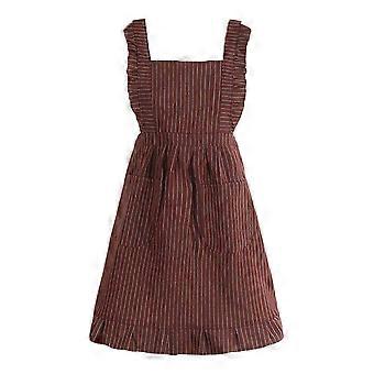 Kitchen Apron Soft Texture Double Pocket Design Breathable Striped Shirring Oil-proof A-line Adjustable Dinner Apron For Florist's Shop