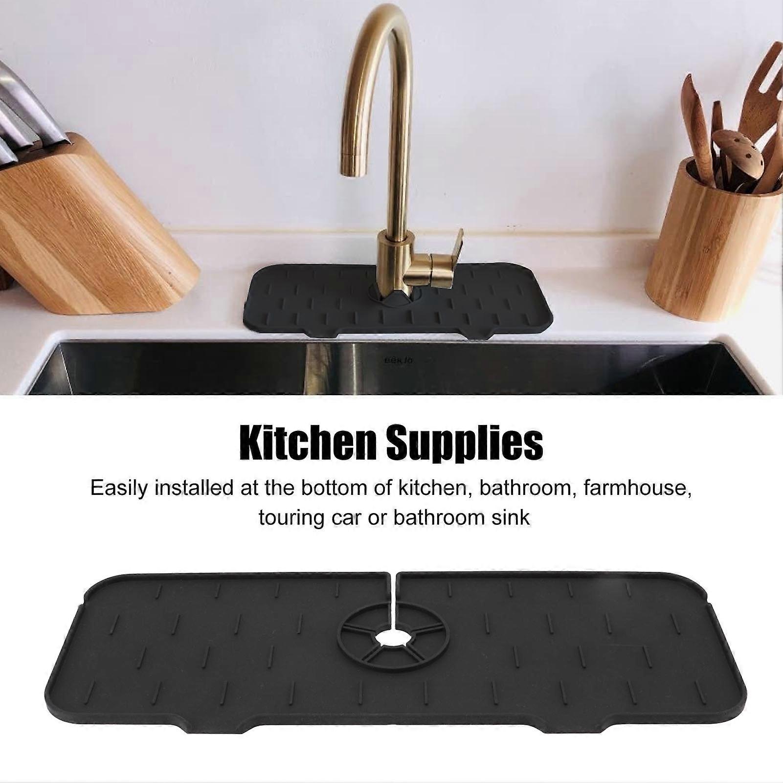 Kitchen Sink Splash Guard, Silicone Sink Faucet Mat Handle Drip Catcher Tray Behind Faucet, Durable Sink Draining Drying Pad for Kitchen Counter[black
