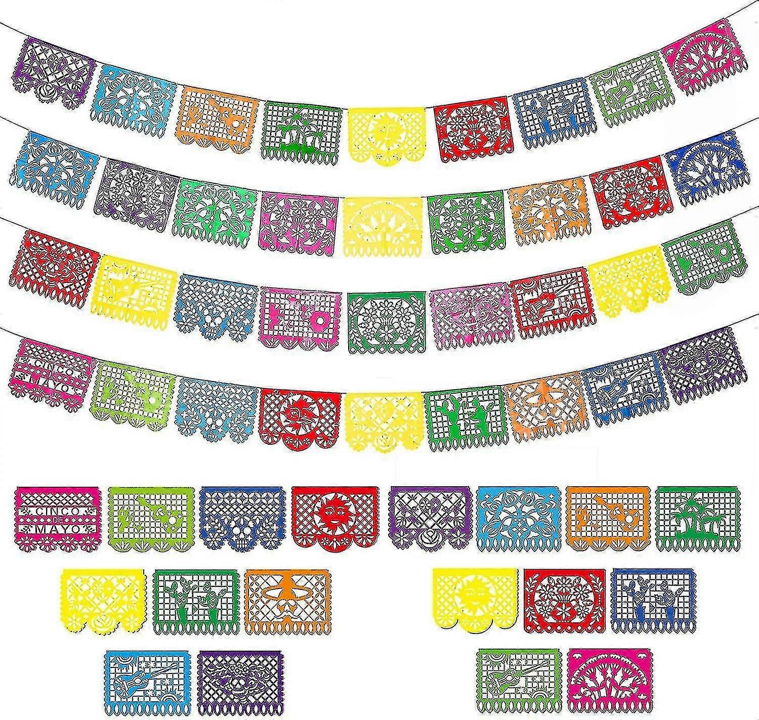Mexican Fiesta Plastic Hanging Banner with Papel Picado Design for Cinco de Mayo Decorations and Theme Party Decor