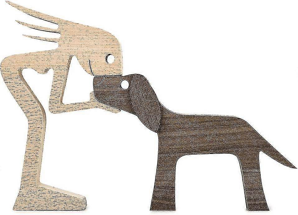 Wooden Sculptures Handmade Accents Craft Figurine For Home Decor Accents, Woman And Dog Wooden Statue, Animal Sculptures Collection, Gift For Men Wome