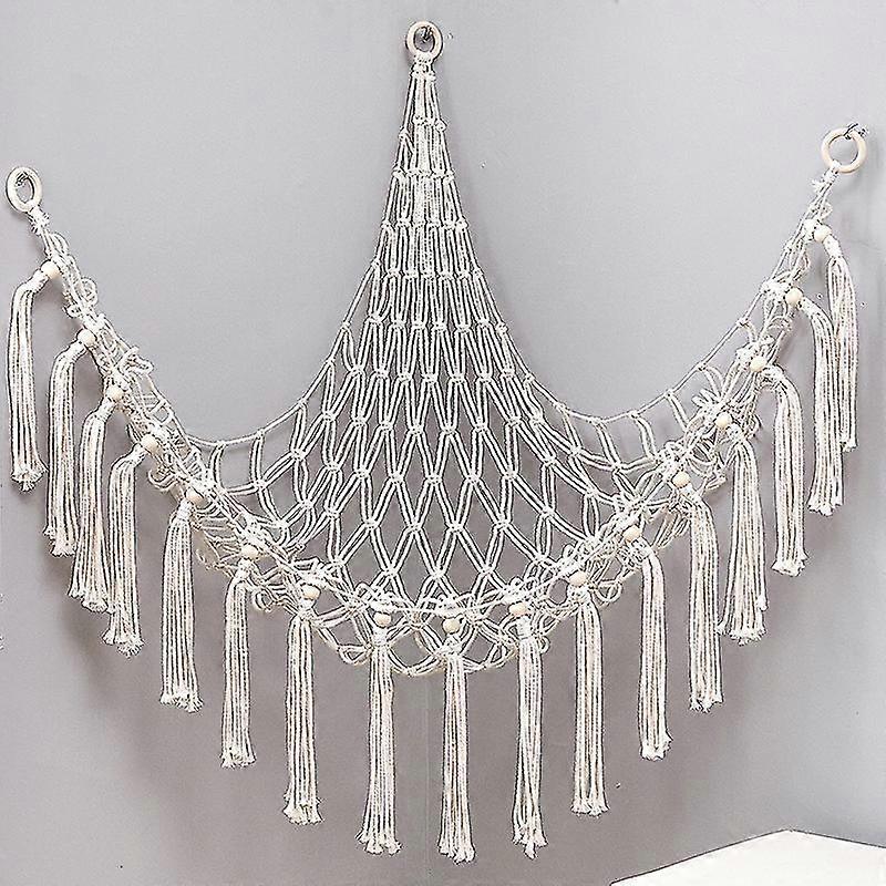 Woven Cotton Rope Toy Hammock Large Capacity Wall Sling Corner Toy Storage Bag1pcs-white