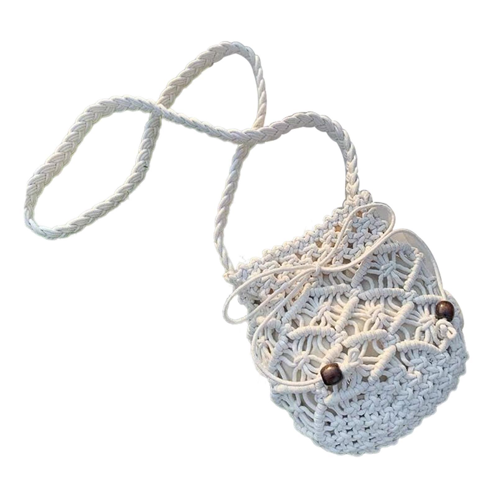 Woven Shoulder Bag Phone Purse Bucket Bag Hollow Out Drawstring Pockets White
