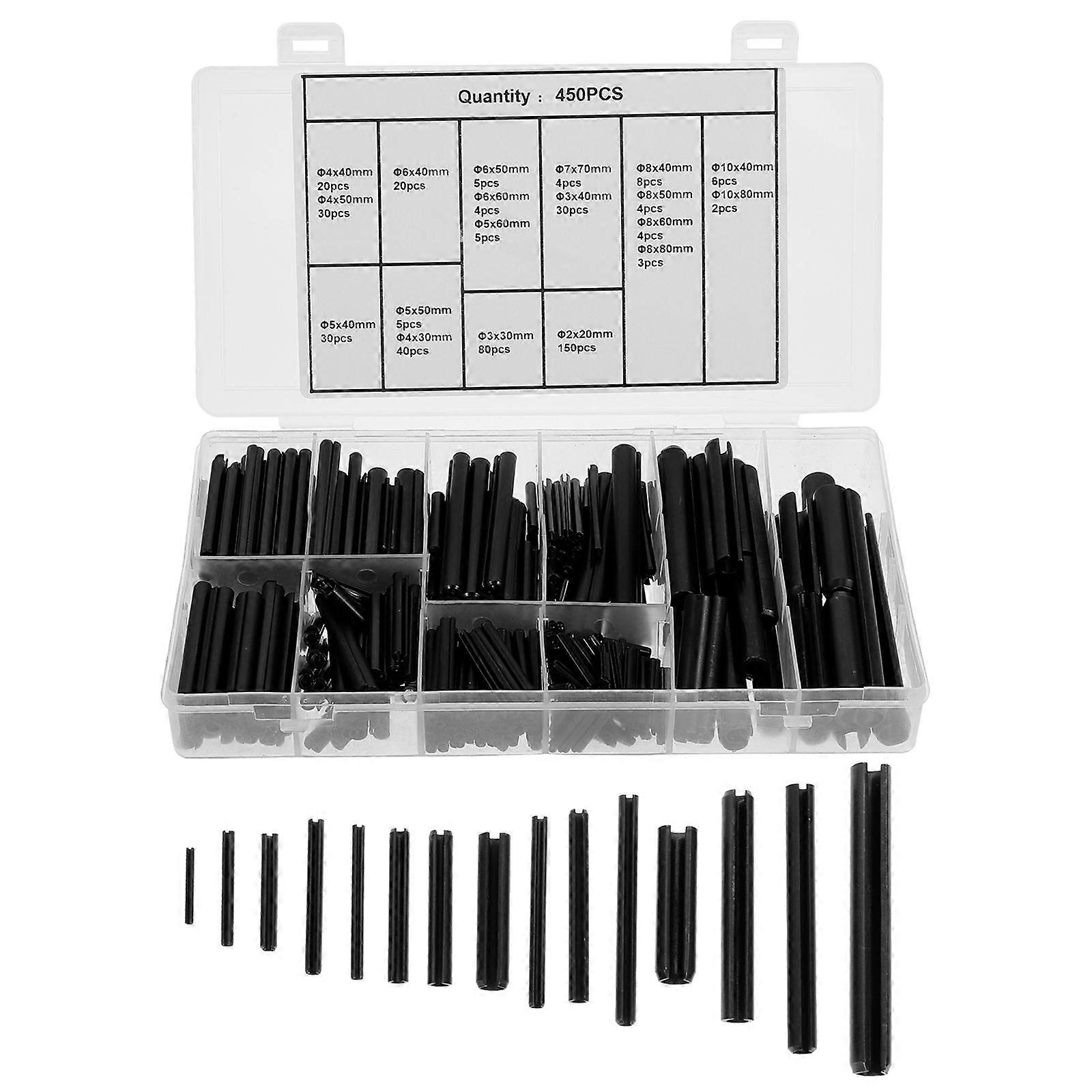 Manganese Steel Spring Pin Slotted Spring Pin for Machine 450Pcs Black