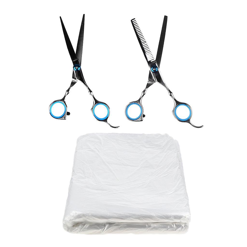 Description: Very sharp, durable and comfortable to handle and use. Run smooth. Perfect for both professional salon and home. Great for any type of cut, as point cutting, slice, blunt. Stylish design with curved finger rest. Material: Stainless Steel and Alloy Handle Scissor Size: 6 inch Color: Silver Specification: Size: Approx. 150 x 130 cm / 59.05 x 51.18 inch Package Includes: 2 Pieces Professional Hair Scissors 30 Pieces Disposable Salon Capes