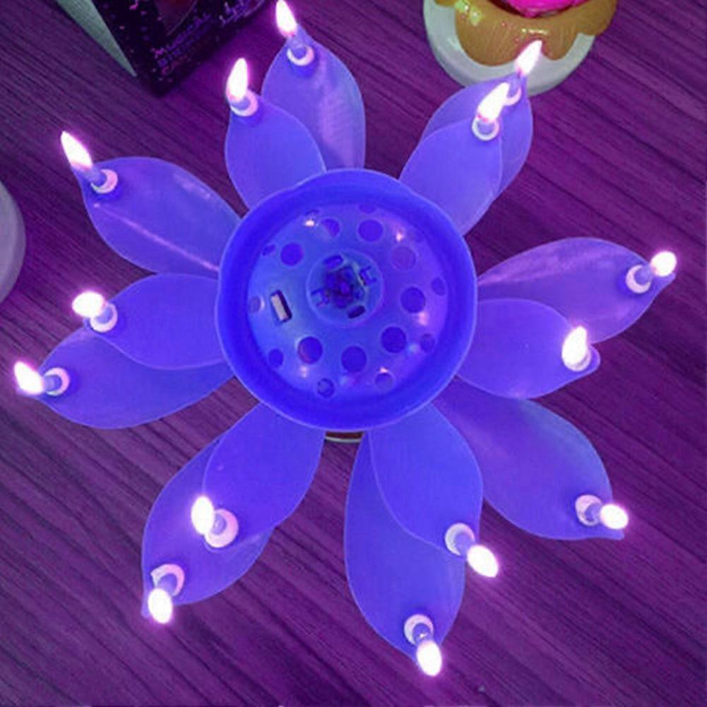 Rotating Music Lotus Cake Candle Birthday Party Magic Flower Blossom Candle