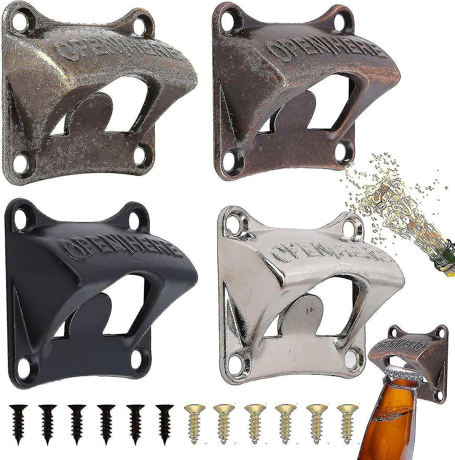 Auspicious-wall Mounted Beer Bottle Opener 4 Pcs Wall Mounted Bottle Openers Vintage Metal Bottle Op