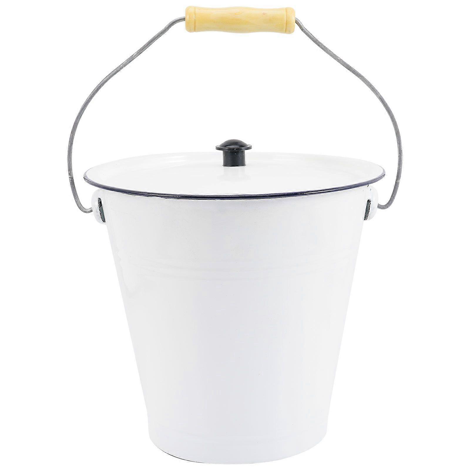 Enamel Burn Barrel Wood Handle Paper Burner Bucket Covered Fireplace Ash Bucket Garden Incinerator