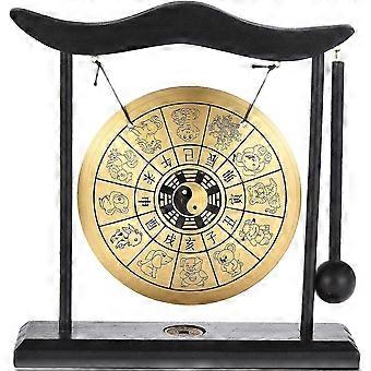 Brass Gong Zen Art For Fortune, 12 Chinese Zodiac Tai Chi Bagua Diagram Gong With Mallet, Desktop Feng Shui Decoration