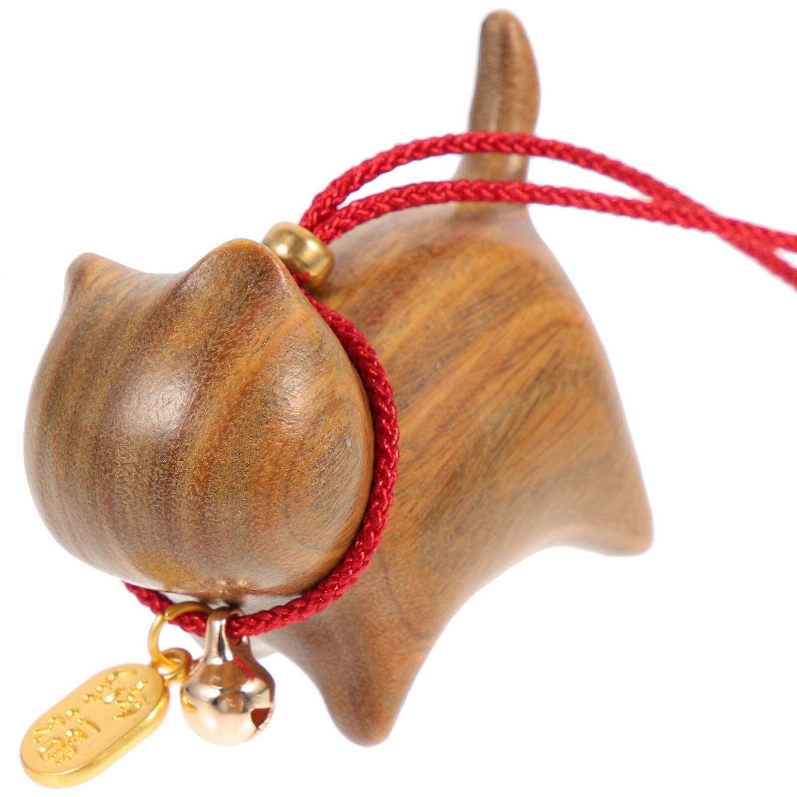 Ethnic Style Sculpture Cat Car Pendant Wooden Car Decor Wooden Cat Car Craft