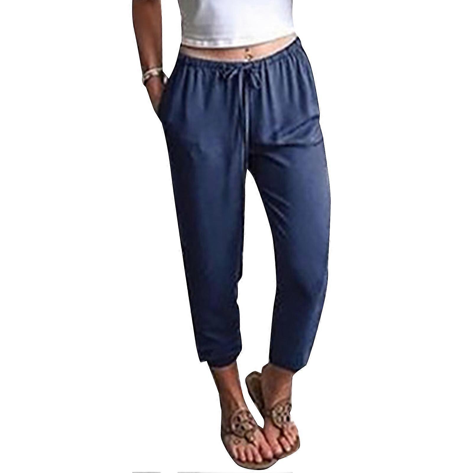Women Drawstring Waist Pants Elastic Leg Opening Casual Long Trousers with Side Pockets