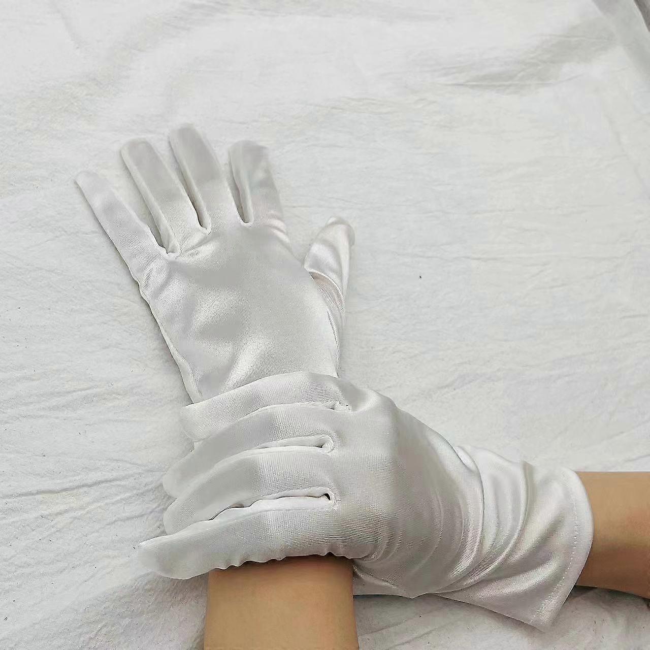 Women Satin Wedding Bridal Short Evening Gloves Green Full Finger Strethy Wrist Length Costume Prom Lolita Party Gloves
