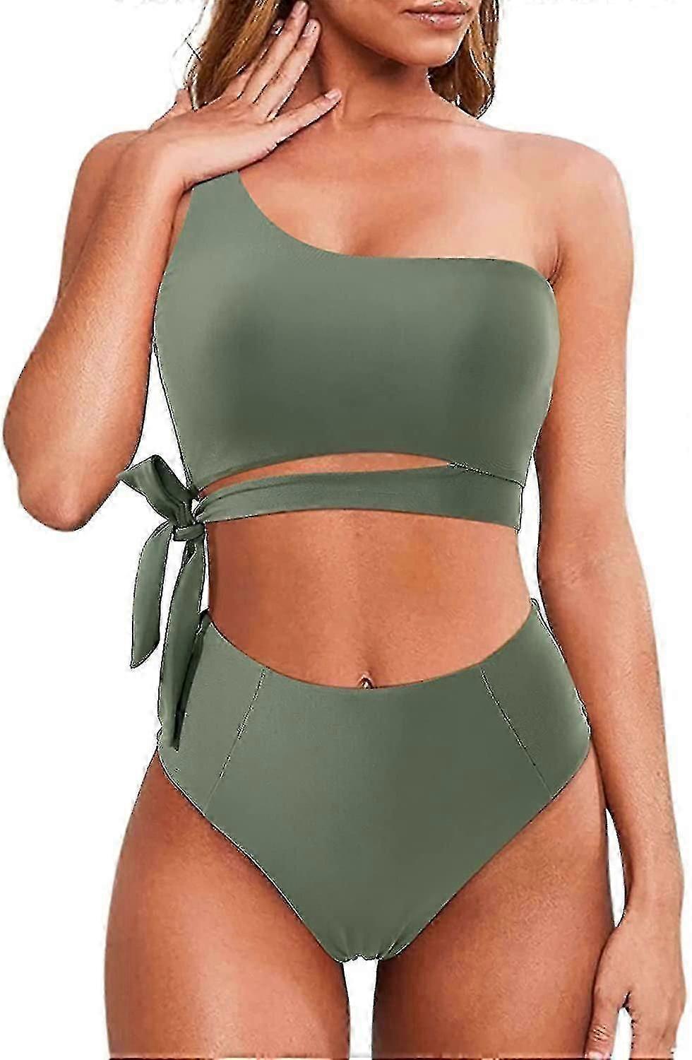 Women High Waisted Bikini Tie High Cut One Shoulder Two Piece Swimsuits-Good