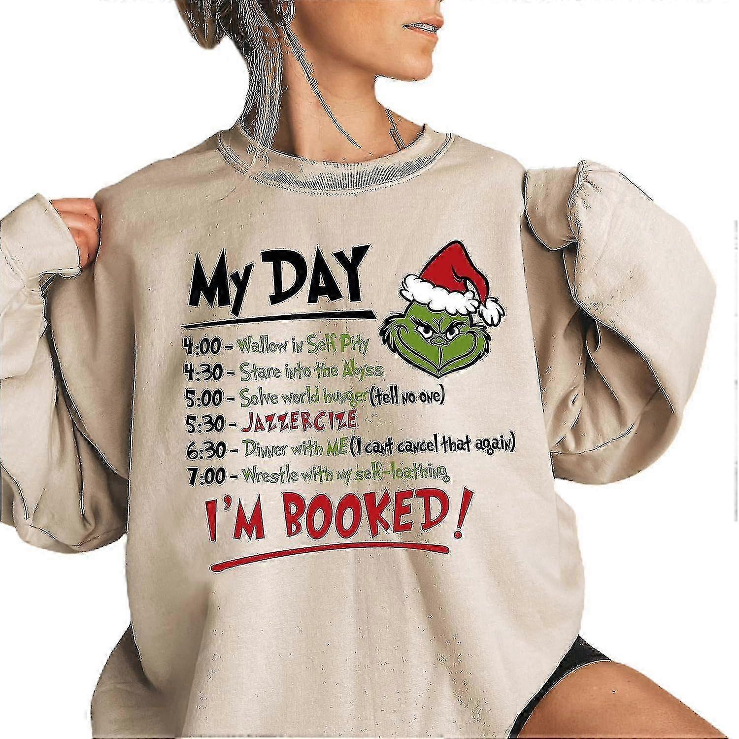 Women Christmas Grinch My Day I'm Booked Sweatshirt Pullover Sweater Long Sleeve Green Monster Jumper Tops Novelty Xmas Gift