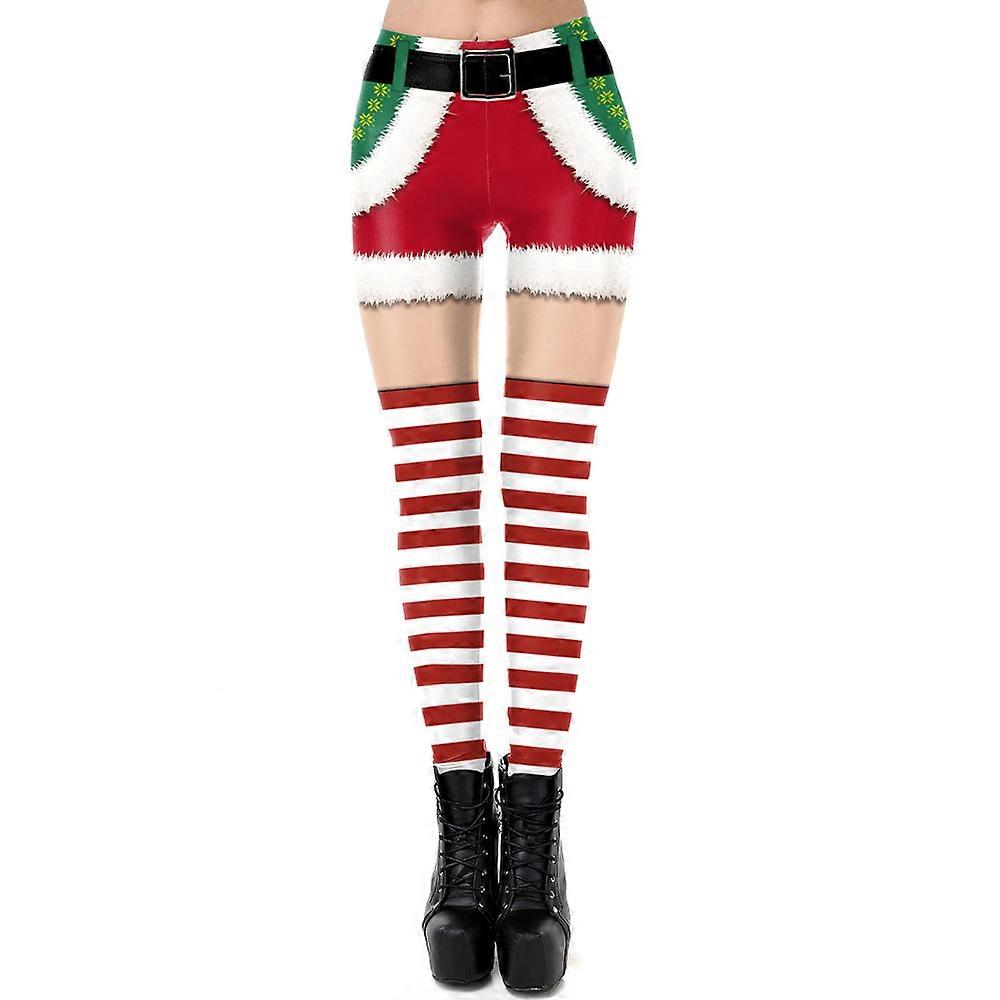 Women Christmas 3D Print Leggings Stretch Skinny Yoga Pants Xmas Party Santa Elf Novelty Trousers Gift
