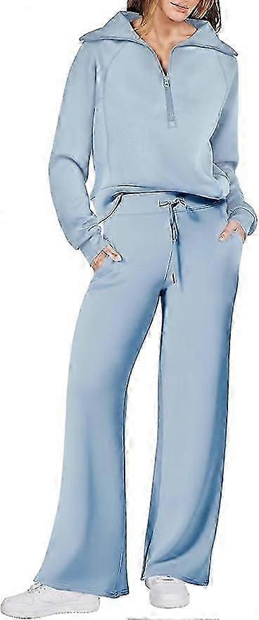 Women 2 Piece Outfits Sweatsuit Set 2023 Fall Oversized Half Zip Sweatshirt Wide Leg Sweatpant Lounge Set Tracksuit