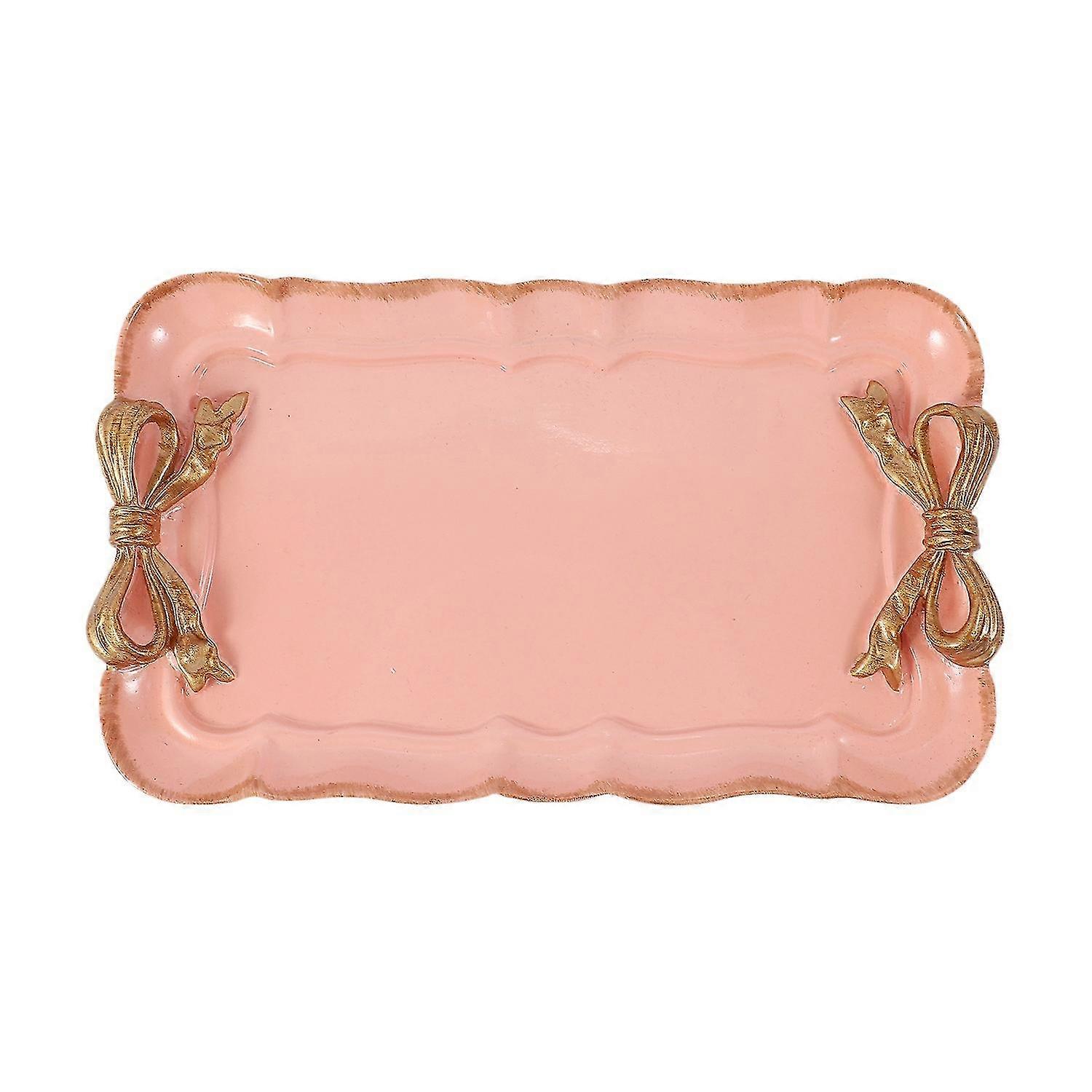 European Style Bow Cake Storage Trays Makeup Organizer Dessert Plate Square Decor Tray Kitchen Storage Trays 12x20cm Pink
